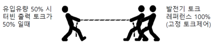 ※ 터빈의 회전하는 힘과 발전기가 정지하고자 하는 힘의 균형이